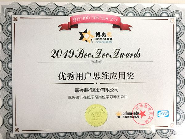 近日,中国企业在线学习大会暨2019年企业在线学习博奥奖颁奖仪式举行,嘉兴银行在线学习平台——“随e学”学习地图项目荣获2019年博奥奖之“优秀用户思维应用奖”。