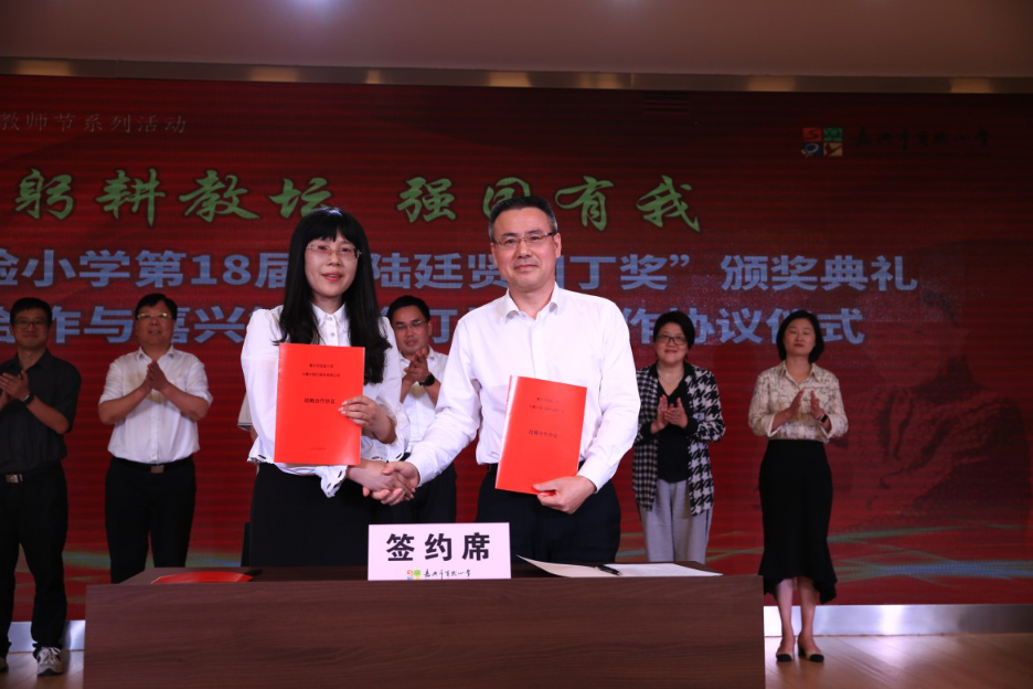 9月7日下午,总行党委副书记、行长章张海携办公室主任陆焕卿、工会办主任方蓓琳、机构金融部总经理周阳以及南湖支行、开发区支行相关负责人一行,赴市实验小学参加以“躬耕教坛 强国有我”为主题的第18届“陆廷贤园丁奖”颁奖典礼暨校企合作签约仪式。市台办主任霍忠华、南湖区政协副主席俞新华、陆廷贤园丁奖发起人代表王兆熊、市实验小学校长张晓萍等参加活动。