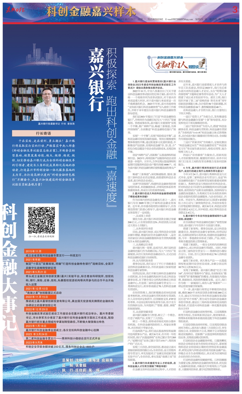 5.嘉兴银行今年在科创金融领域有什么新规划、新进展?