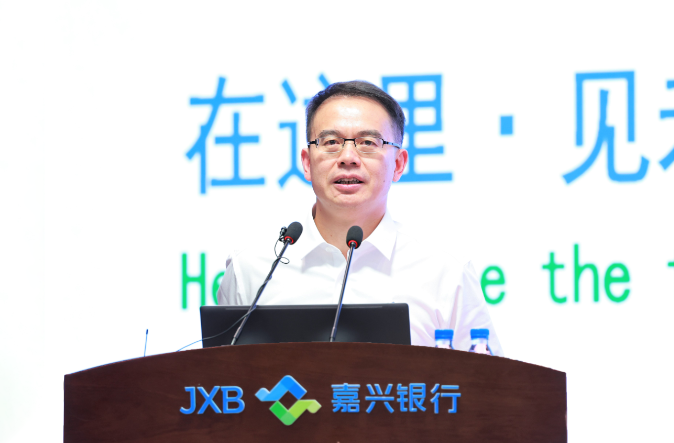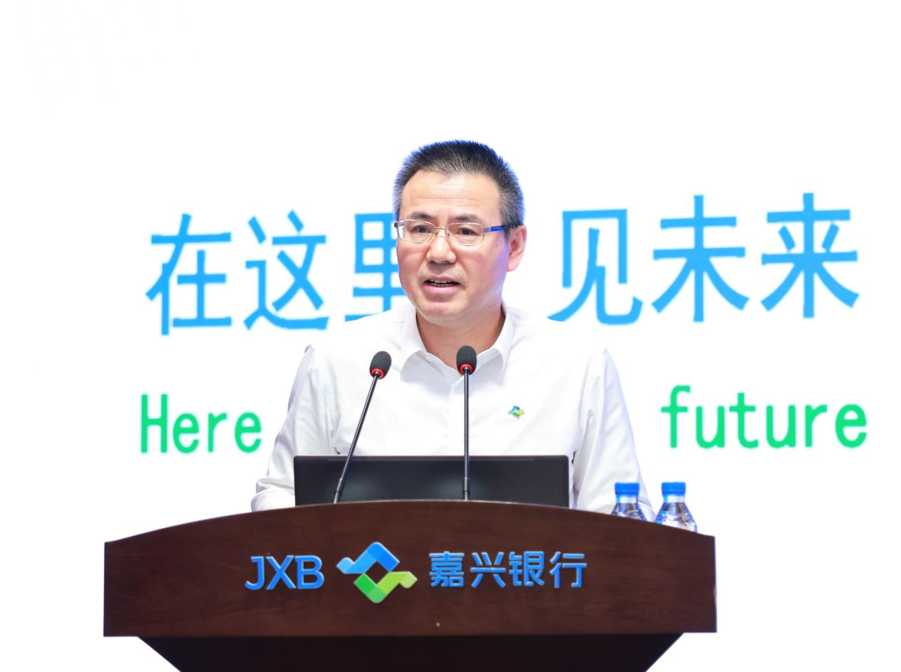 总行党委副书记、行长章张海作题为《拥抱数字革命 加快数字创新 赋能科创金融战略目标高质量落地》的主题报告。他从“数字化转型”角度出发,探讨了嘉兴银行如何拥抱数字革命、加快数字创新,如何实现科创金融全面转型的高质量落地。他指出,信息革命瞬息万变,数字赋能势在必行,要转变固有思维,实现“产品思维”到“用户思维”的跨越;要明确核心理念,通过数字创新驱动,创新经营模式,形成差异化的竞争优势。他强调,要通过数字化转型,全面推进业务数据化、数据资产化、数据业务化、业务智能化、组织敏捷化“五化”改造,努力实现员工在线、产品在线、客户在线、管理在线“四大变革”。作为区域性银行,嘉兴银行要集中一切优势力量,以科技创新为引领,在管理上实现“业财融合”,在业务上实现“业技融合”,形成具有鲜明嘉银特色的“数字转型驱动力”,为全行业务发展、管理提升提供赋能与支撑。