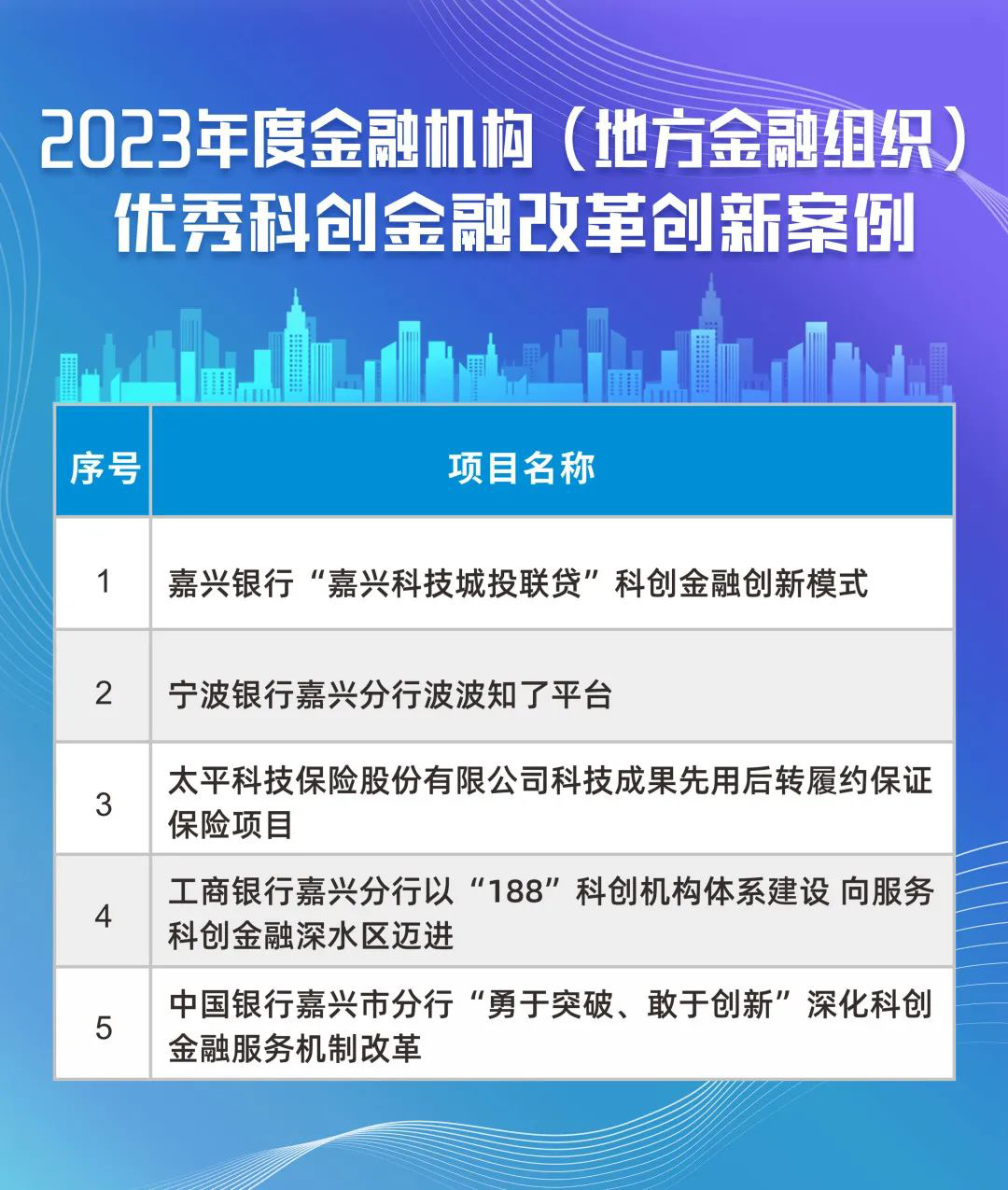 为深入推进嘉兴科创金融改革试验区建设,鼓励金融机构和组织更好地服务科技创新创业,近日,由嘉兴市人民政府金融工作办公室牵头,在全市开展的2023年度嘉兴市科创金融改革创新案例评选活动中,经公众投票和专家评审等多轮评选,《嘉兴银行“嘉兴科技城投联贷”科创金融创新模式》案例荣登2023年度嘉兴市优秀科创金融改革创新案例榜单。