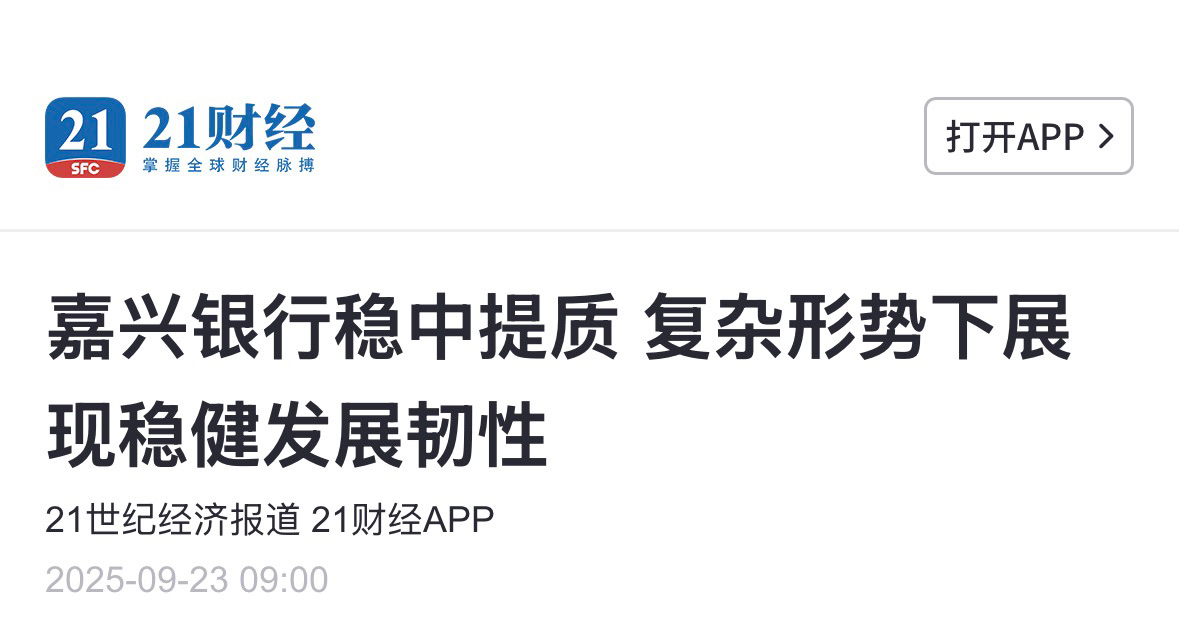近日,21世纪经济专题报道了嘉兴银行稳中提质的案例,在宏观经济环境复杂多变、银行业普遍承压前行的背景下,嘉兴银行以扎实的经营实践交出了一份具有说服力的答卷。该行坚守服务实体经济初心,聚焦主责主业深耕细作,不仅保持规模稳健增长,更在科创金融、绿色转型、数字赋能等领域持续突破,展现出较强的战略定力和发展韧性。内容如下: