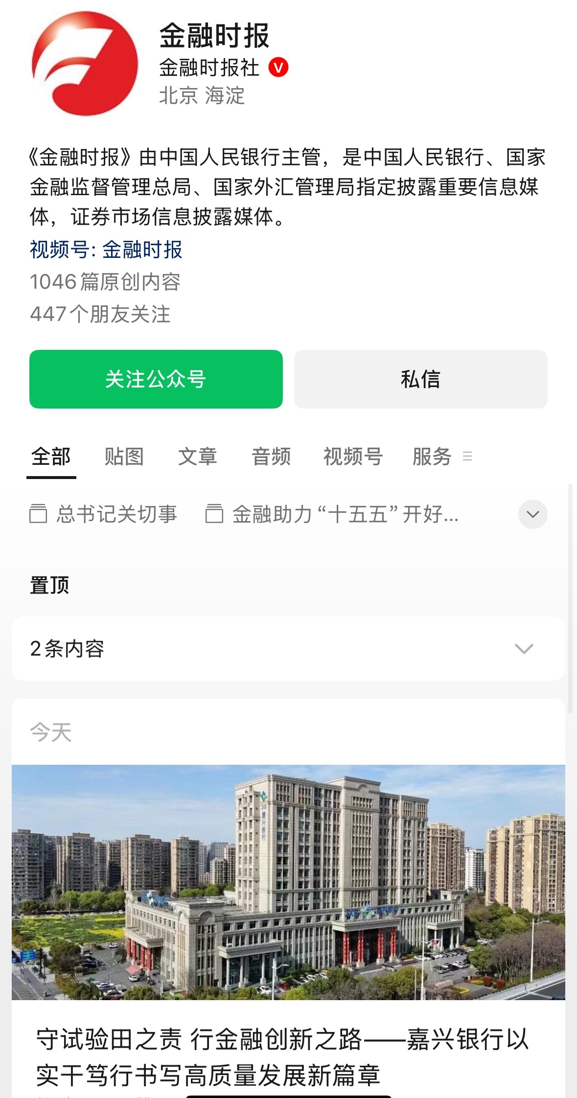 4月27日,“金融时报”官方公众号专题报道了嘉兴银行以实干笃行书写高质量发展新篇章。内容如下: