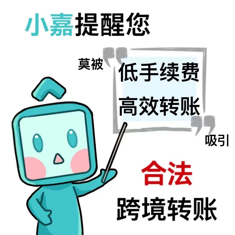 小嘉在这里提醒大家,莫被犯罪团伙的“低手续费”“高效转账”所吸引,请遵守外汇管理法律法规,合法跨境转账!