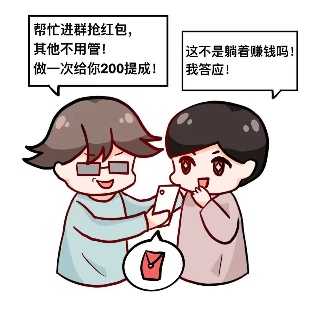 随着社交软件的普及,逢年过节给亲朋好友发上一个红包并送上自已的祝福已经成为人们表达自己心意方式之一。但有那么一群人却宣称“你帮我在微信群里抢抢红包,抢完就退群,其它不用管。”“做一次给你200提成,如果金额大再给你加”。抢一次红包就能有200元的提成?这不是躺着就能赚钱吗?