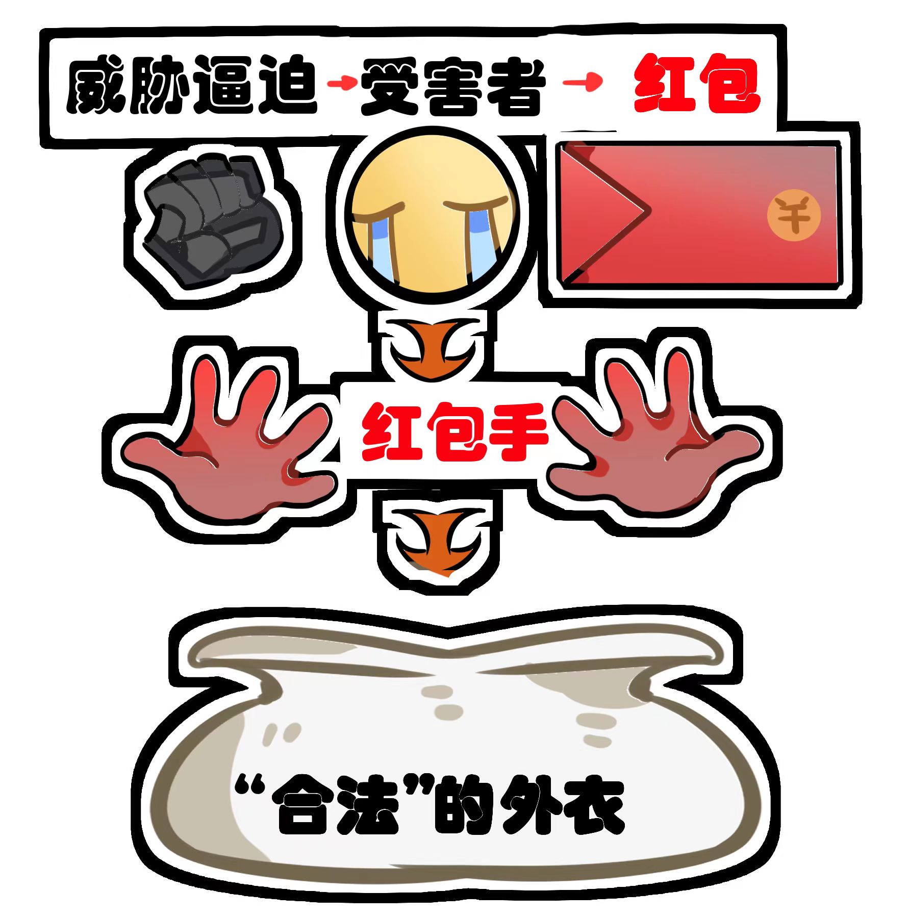 小罗是上游犯罪组织成员之一,专门负责组织敲诈勒索。小罗组织勒索成功后,便会指示“红包手”团队开始工作。“红包手”小队长小虎接到指示后,迅速组织“红包手”团队聚集在一起。建立红包群拉被害人入群并胁迫发红包。“红包手”小孙、小杨等人领取红包后便将被害人踢出群。