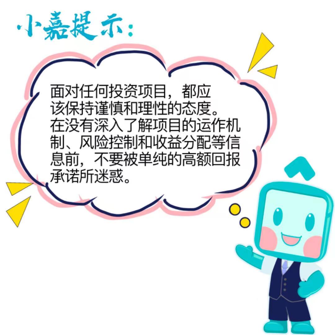 小嘉在这里提醒大家:面对任何投资项目,都应该保持谨慎和理性的态度。在没有深入了解项目的运作机制、风险控制和收益分配等信息前,不要被单纯的高额回报承诺所迷惑。