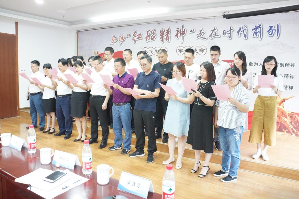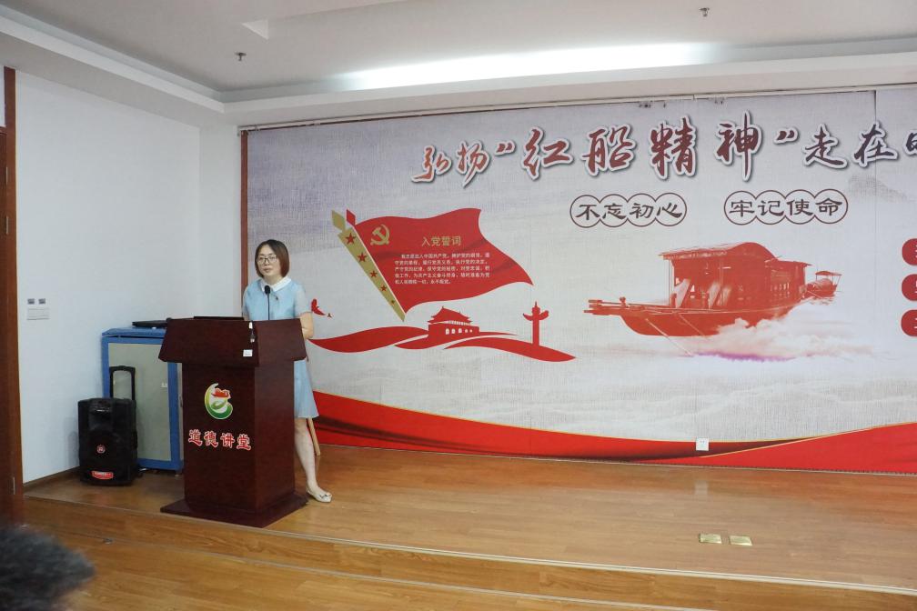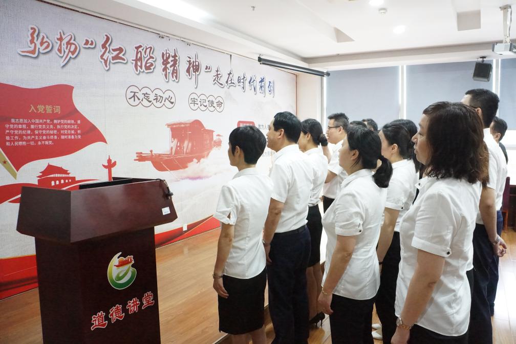 之后按照议程安排,在嘉兴银行副行长兼秀洲支行党支部书记章张海同志的带领下,双方党支部党员代表面向党旗,郑重宣誓;互赠红色书籍,交换智慧力量;秀禾集团第一党支部杨书记为大家准备了题为《新时代党员应如何立足本职,牢记使命》的主题党课,从“创新、奋斗、奉献”的“红船精神”内涵出发,以身边党员的先进事迹为题材,鼓励大家在新时代有所新作为。