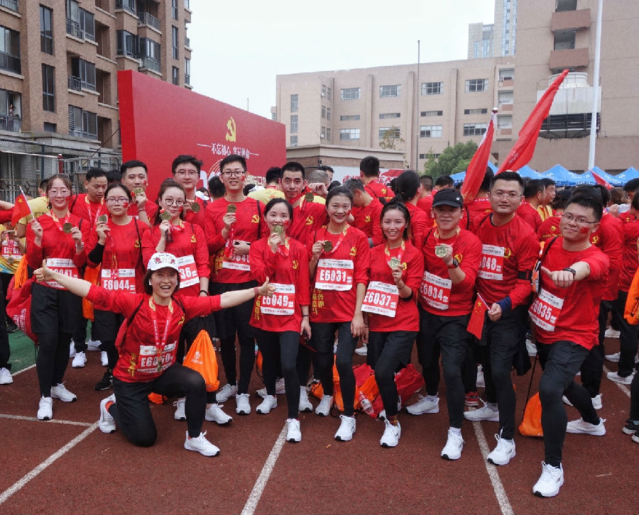 与此同时,在赛事当天,嘉兴银行有20名党员身着象征着意志、激情、自信的国旗红参赛服,与全市1560名党员共同组织“党员方阵跑”,在胸前熠熠党徽的指引下,完成了90分钟跑程,不仅跑出了“红船精神”启航地党员的风采、坚定了永远跟党走的信心,更是充分展现了嘉银人不忘初心、砥砺前行的进取精神,激励着我行广大党员为实现本行高质量发展而不懈奋斗。